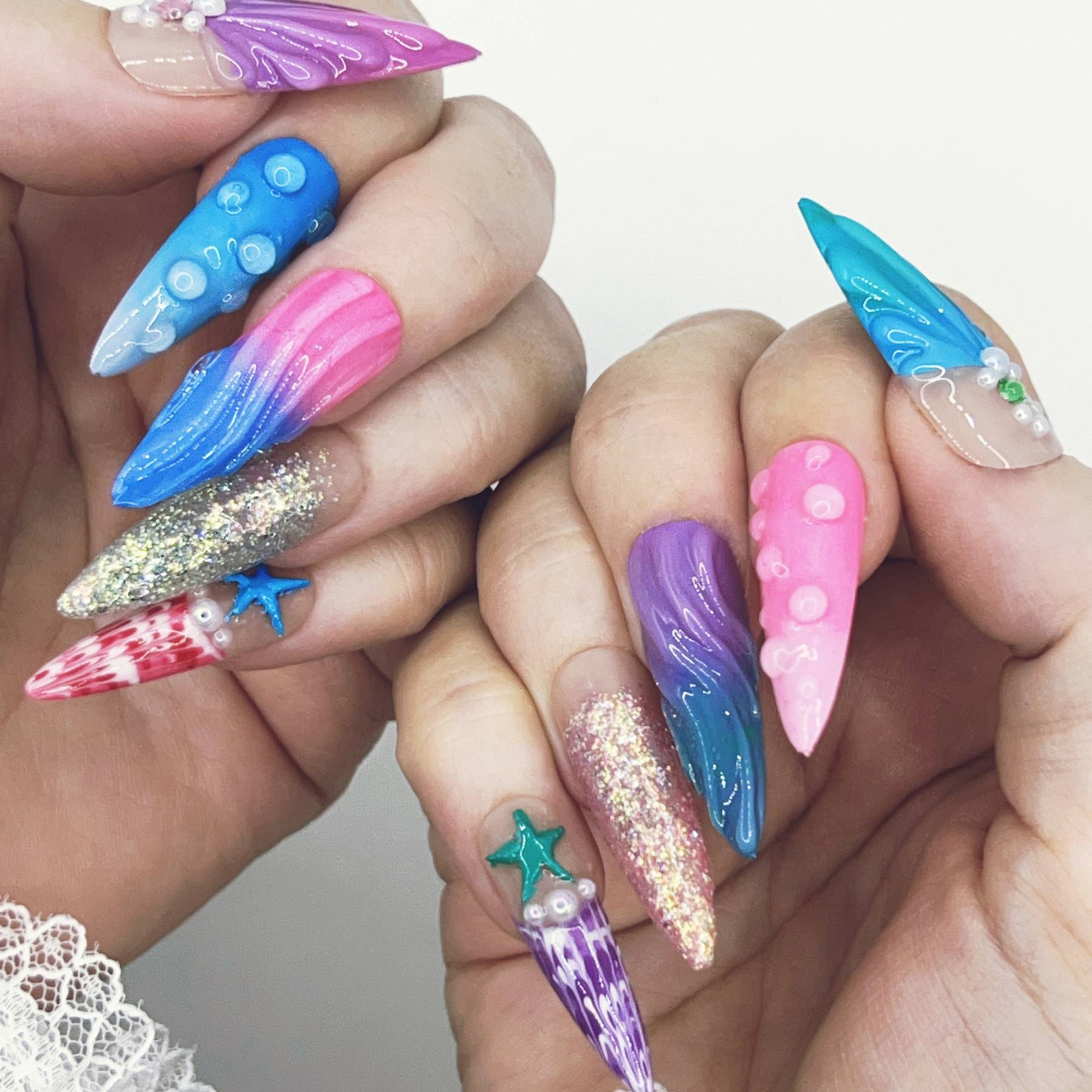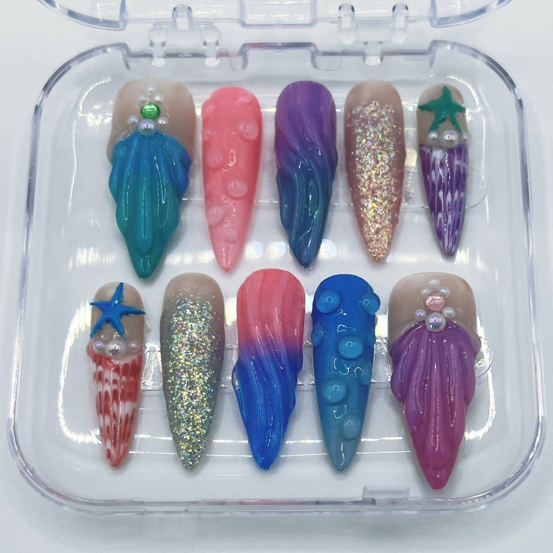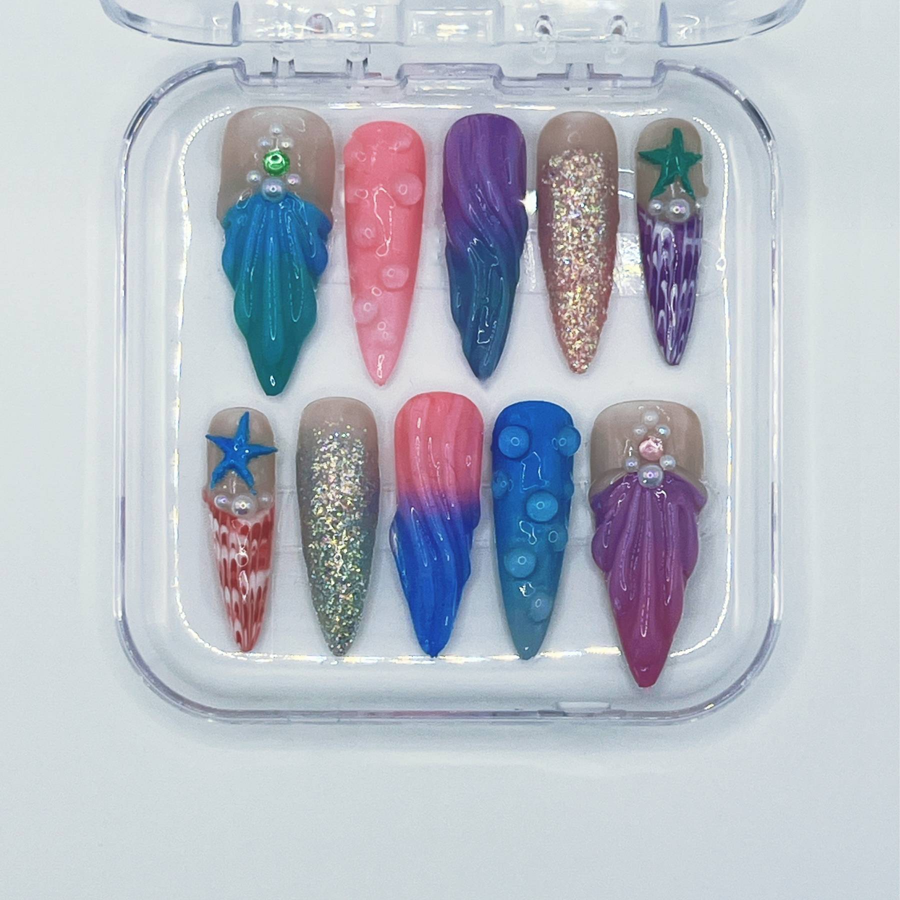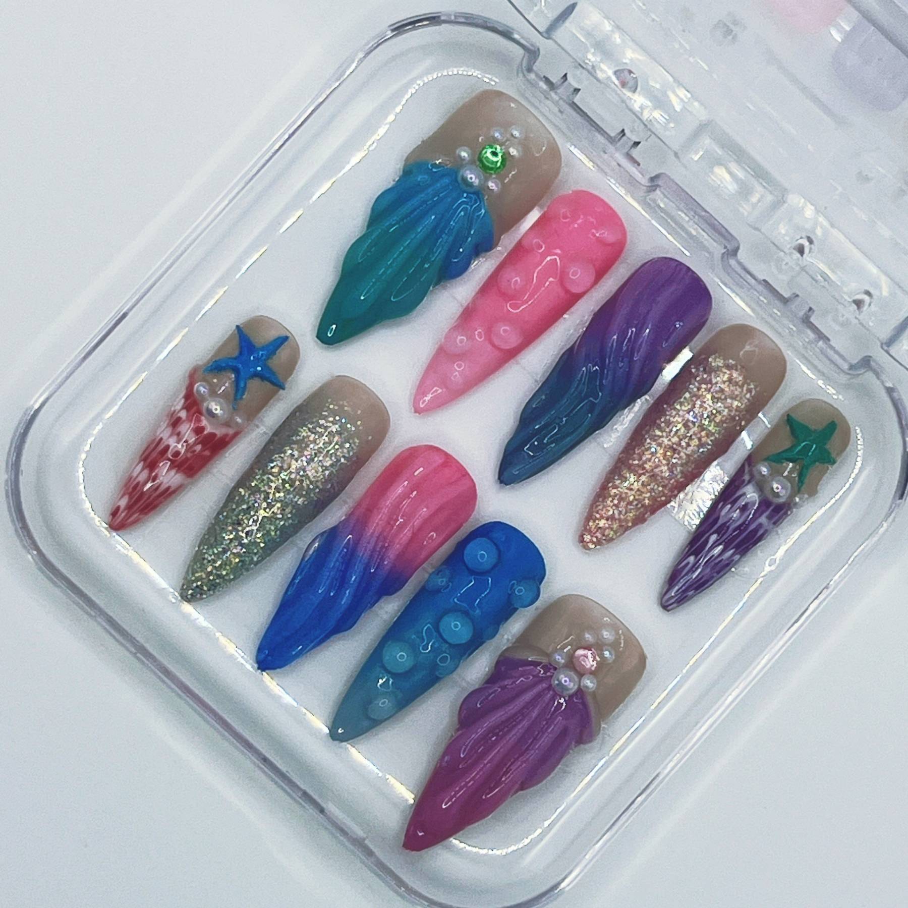 Inspired by treasures beneath the waves, this set blends shimmering blues, sea-glass hues, and aquatic textures. Sculpted details and luminous accents create a design that feels like a royal heirloom from the ocean’s depths. The muse behind this set is Ariel, whose curiosity and spirit make her heir to an underwater kingdom.