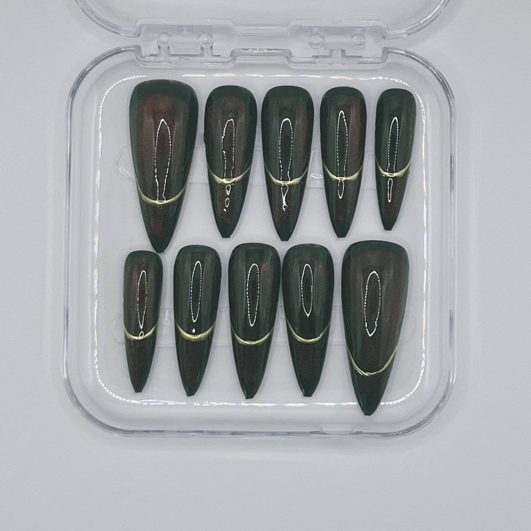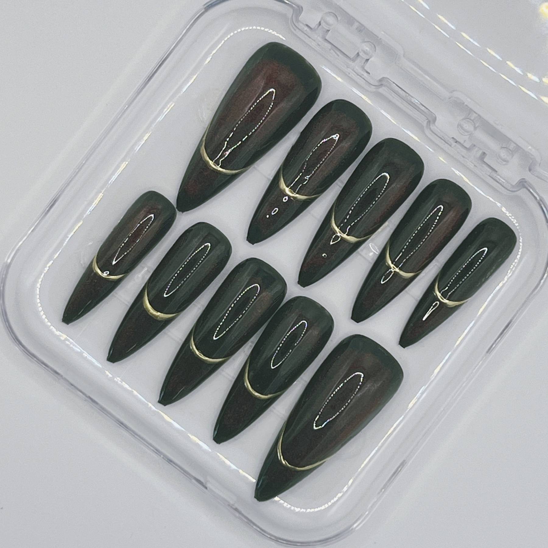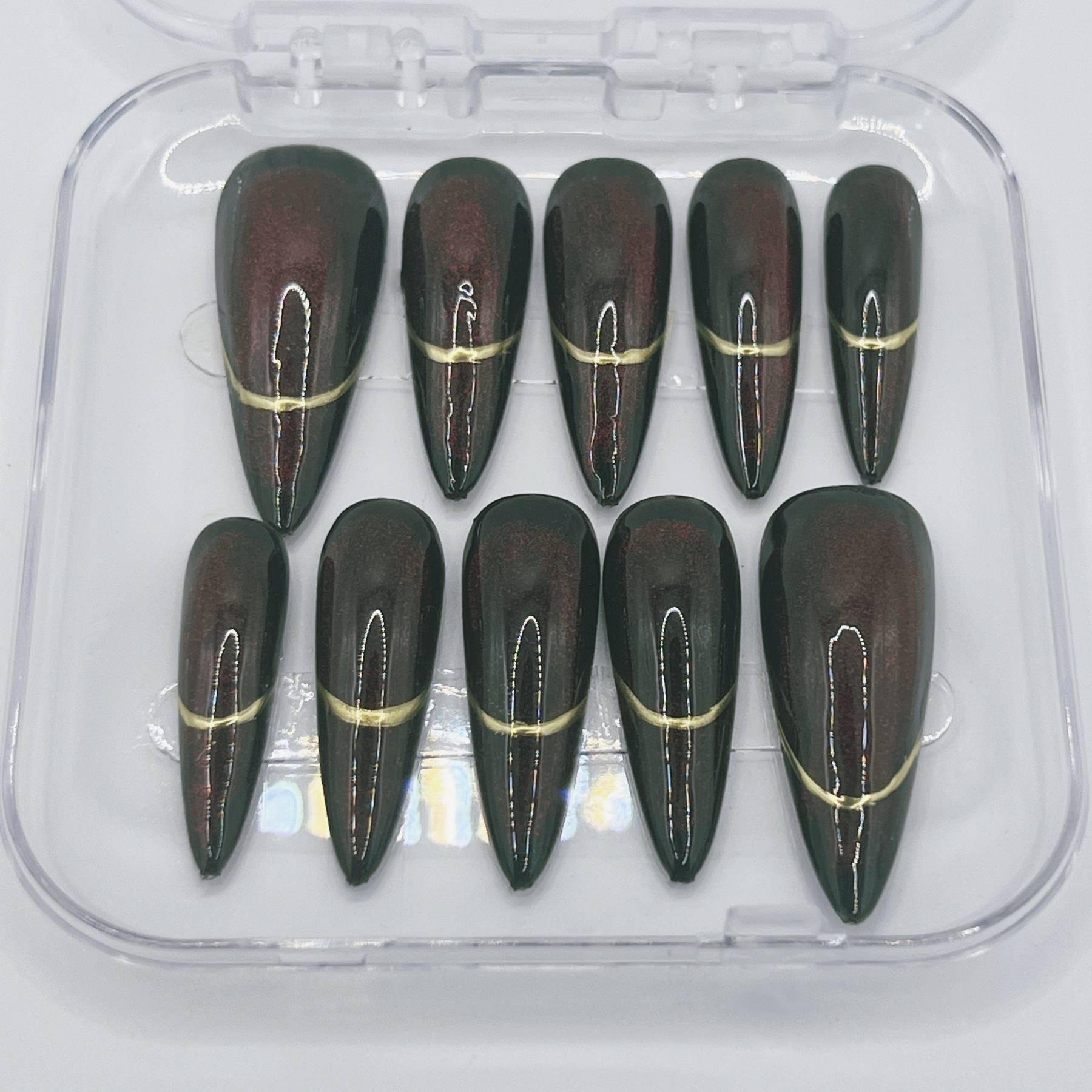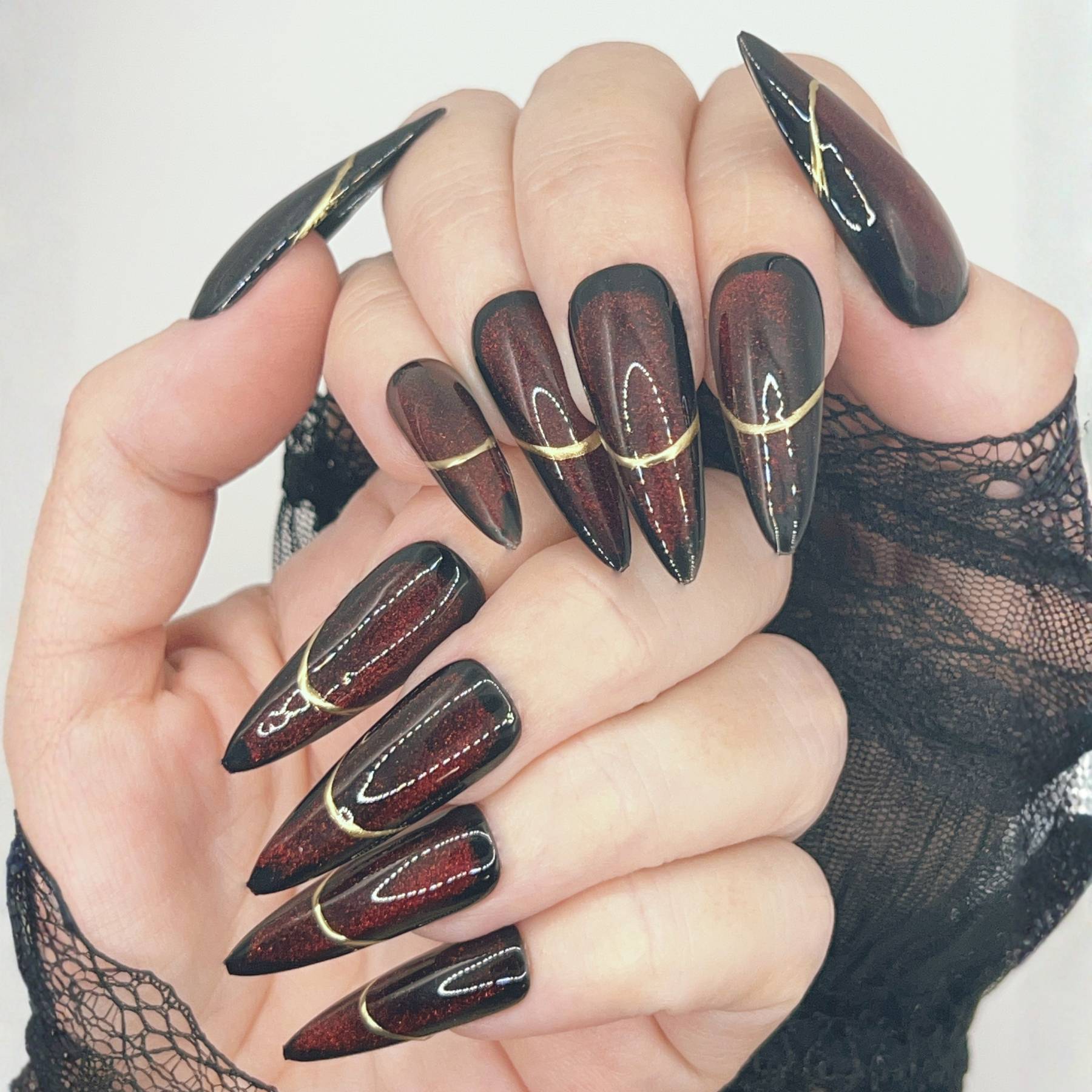 A beauty preserved in shadow. Deep burgundy tones shimmer with subtle shifts of dark magic, reflecting the obsession with youth and power that defines Mother Gothel. Sleek metallic accents and hypnotic finishes give this set an antique, almost alchemical elegance—like a forbidden relic hidden away for centuries. Dark, luxurious, and quietly commanding, this design is made for those who know the true cost of beauty.